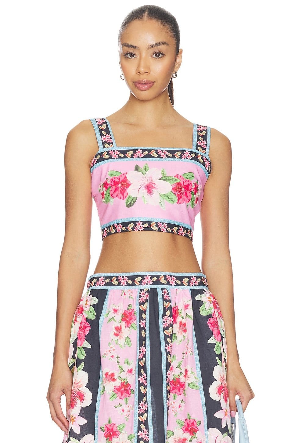 Playful crop top by Yumi Kim, featuring a vibrant floral print in Malta Pink. The adjustable straps and bohemian-inspired design make it perfect for casual outings.