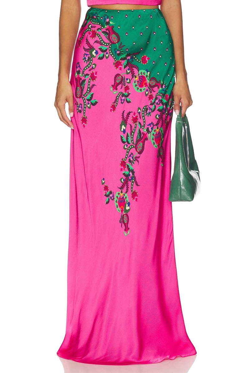 The Revolve Floral Print Long Skirt in Budapest Meadow is ideal for evening, special occasions.