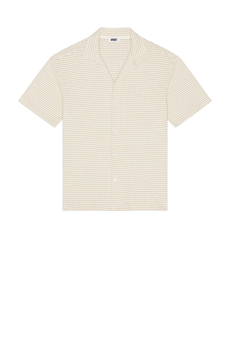 Checkered Knit Bowling Shirt - KROST, designed with checkered knit fabric, short sleeve, spread collar, relaxed fit, button closure. Perfect for smart-casual outings and weekend leisure.