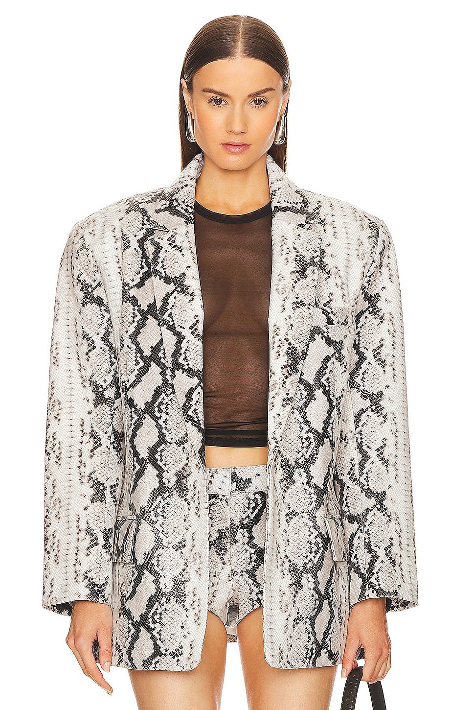 The Revolve Chloe Leather Blazer with Snake Print is ideal for casual.