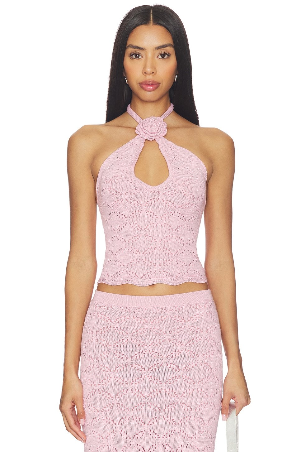 The Revolve Capittana Pink Halter Top is ideal for casual, beach.