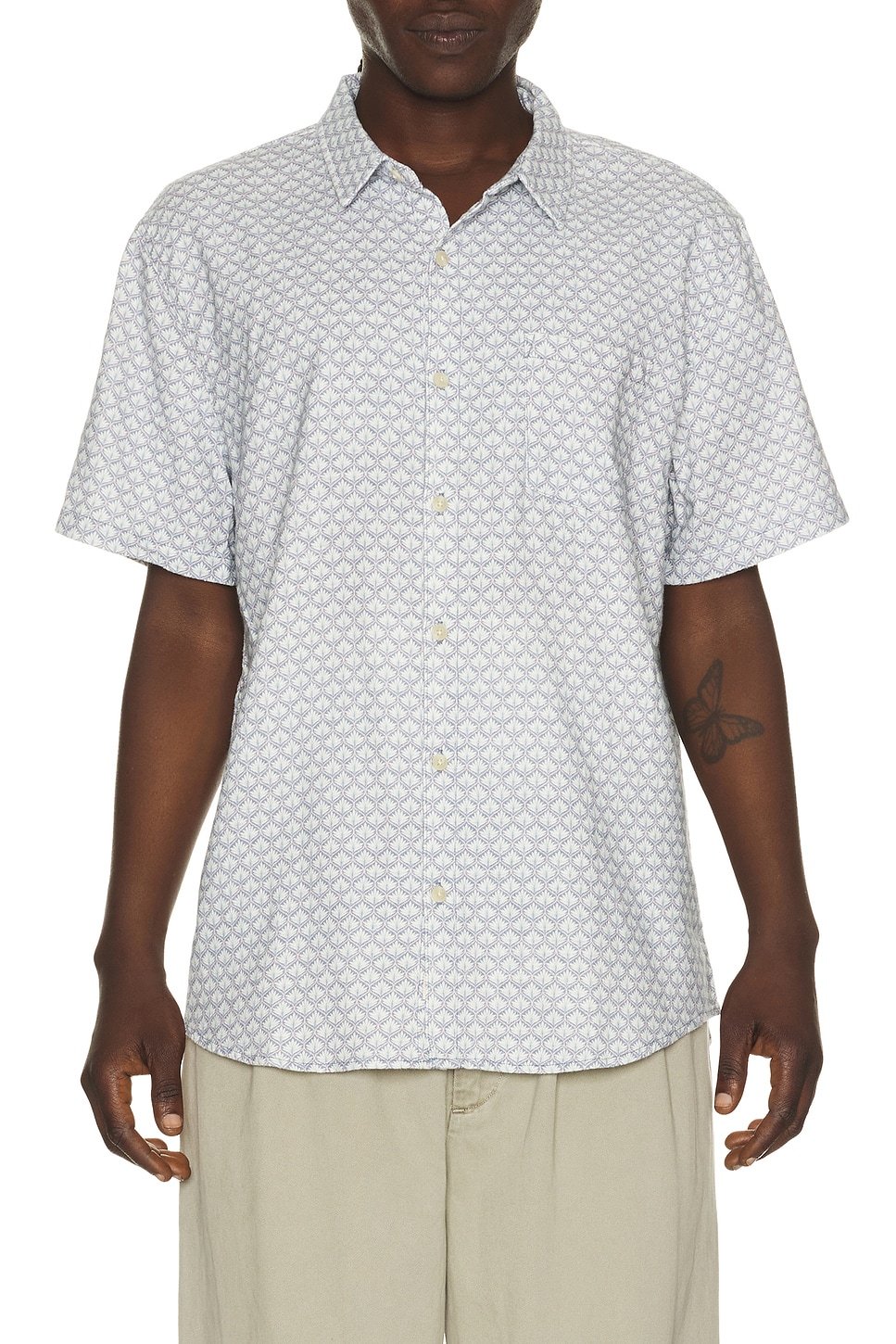 The Revolve Classic Stretch Selvage Shirt in Light Blue Agave Print is available in sizes XXXL, XXL, XL, XS, L, M, S.