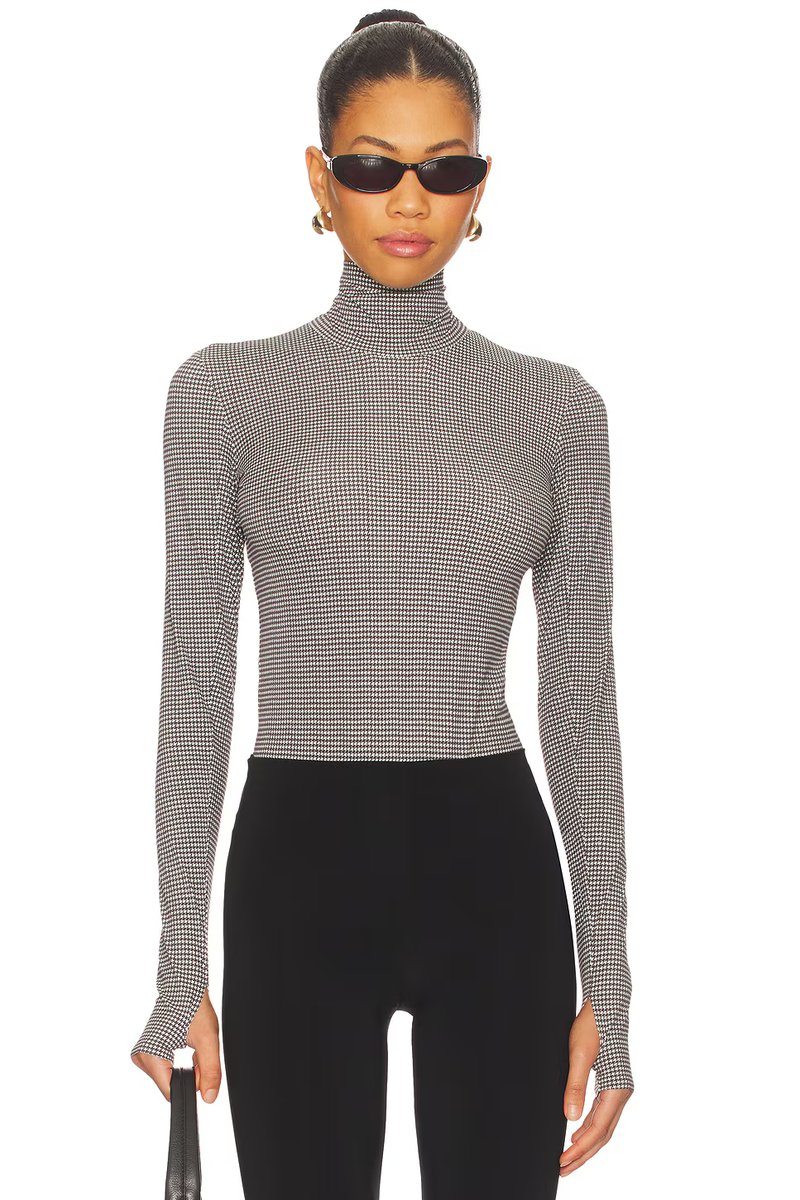 The Revolve Classic Turtleneck Bodysuit in Houndstooth Espresso is ideal for casual, work.