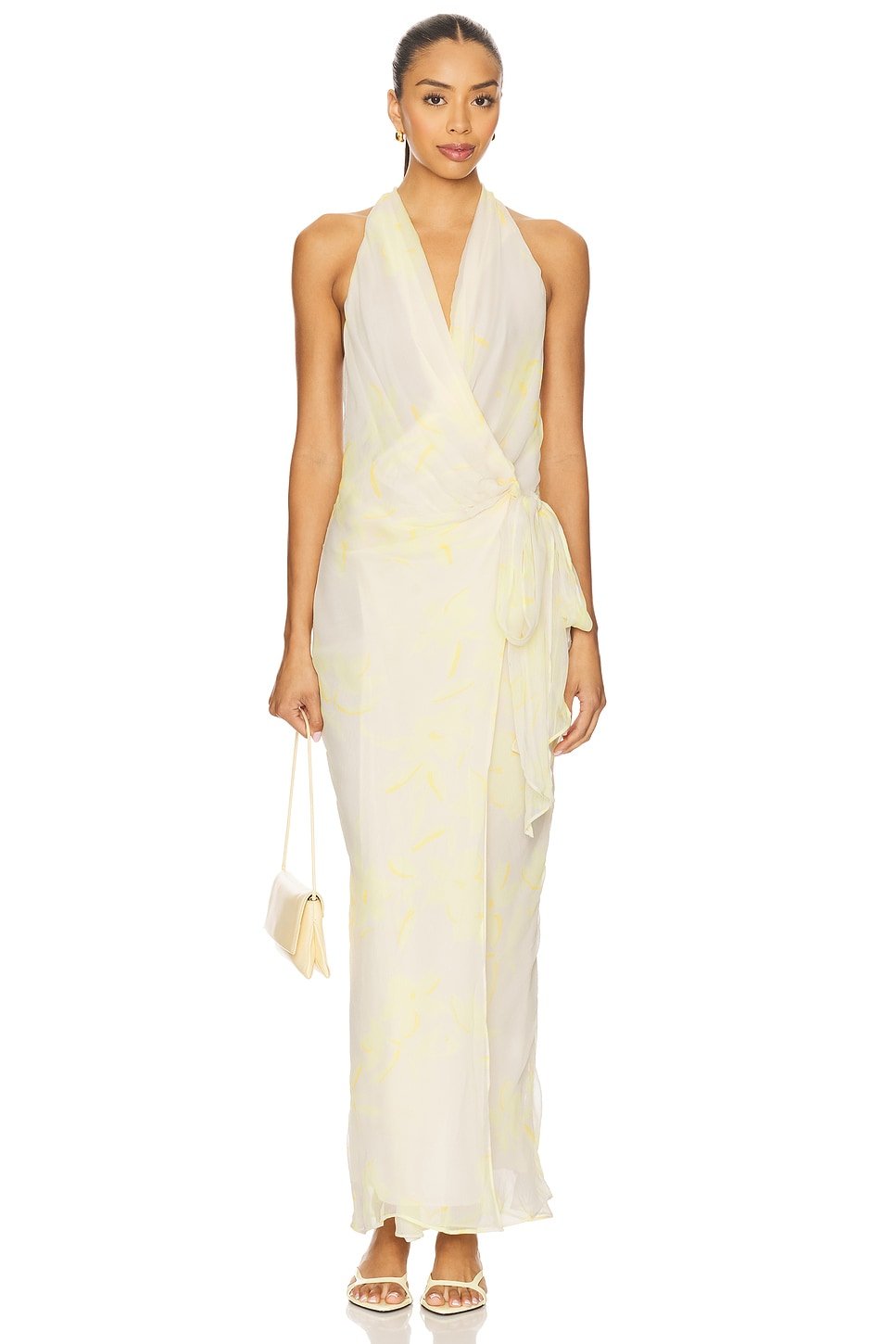The Revolve Colmar Wrap Maxi Dress in Lemon Floral is ideal for casual, special occasion.