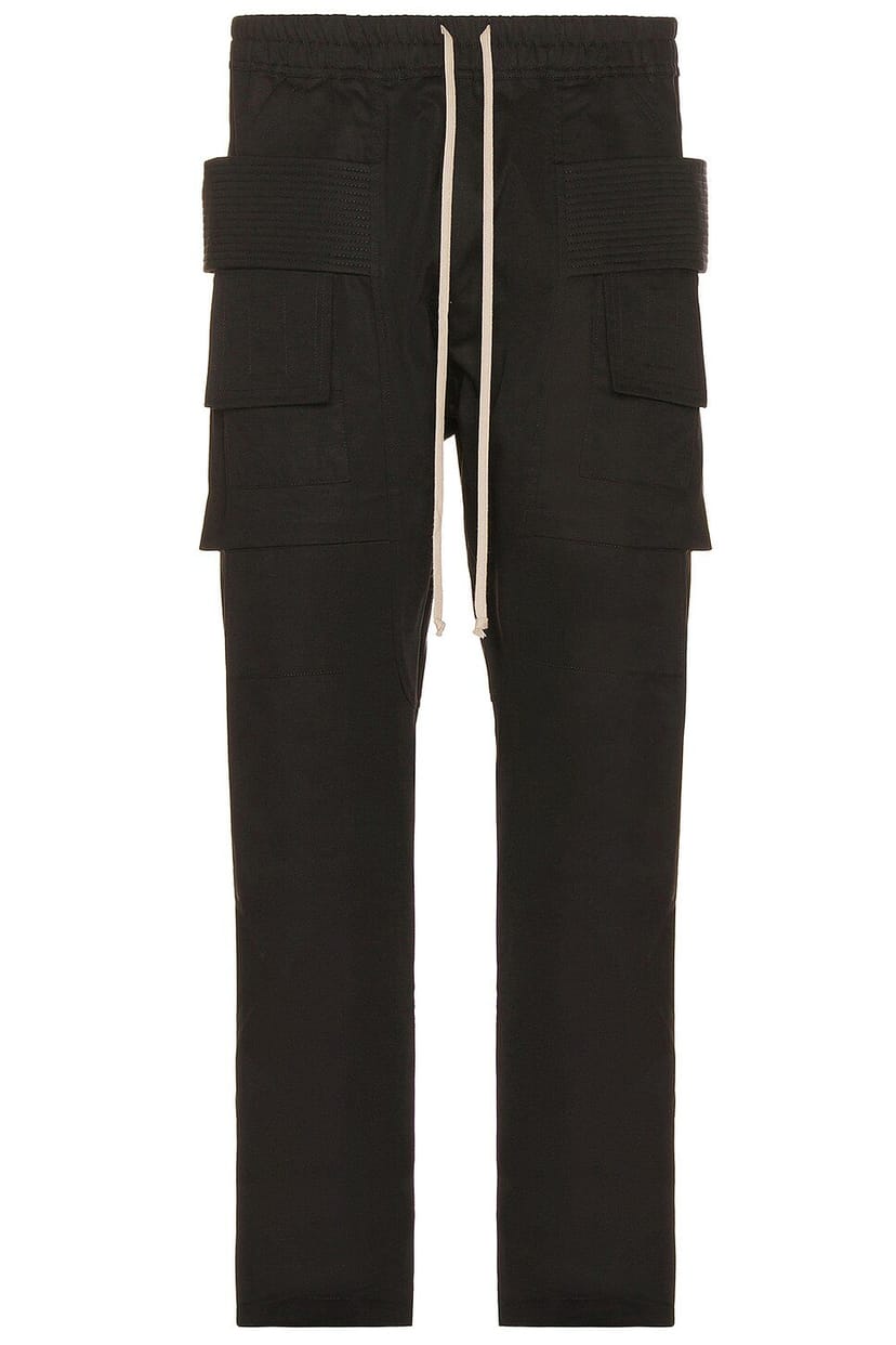 The DRKSHDW by Rick Owens Cargo Drawstring Trousers in Black is available in sizes XXXL, XXL, XL, XS, L, M, S.