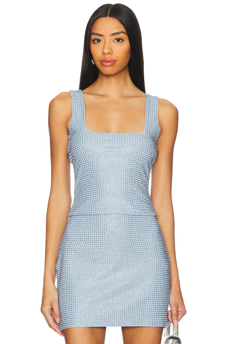 The Revolve Good American Crystal Tank with Sequined Detail is ideal for evening.