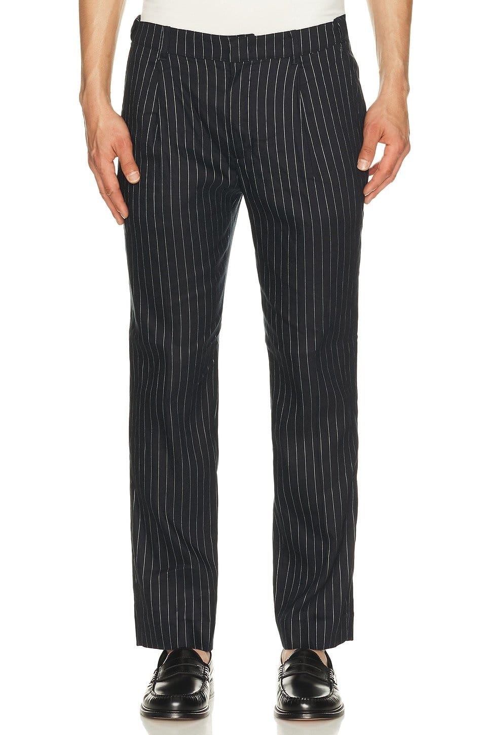 See all outfit ideasStylish Navy stripe linen trousers by Revolve. Featuring a classic pinstripe design, these trousers are perfect for a smart-casual look. Made from linen fabric for breathability and comfort.