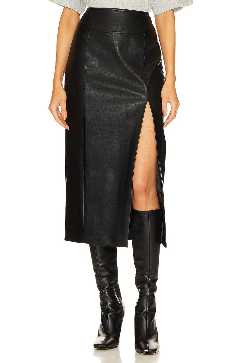 The Revolve Bardot Faux Leather Midi Skirt in Black is ideal for casual, evening.