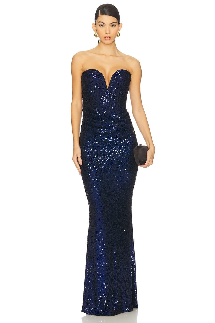 The Revolve Sapphire Sequin Maxi Dress is available in sizes XXXL, XXL, XL, XS, L, M, S.