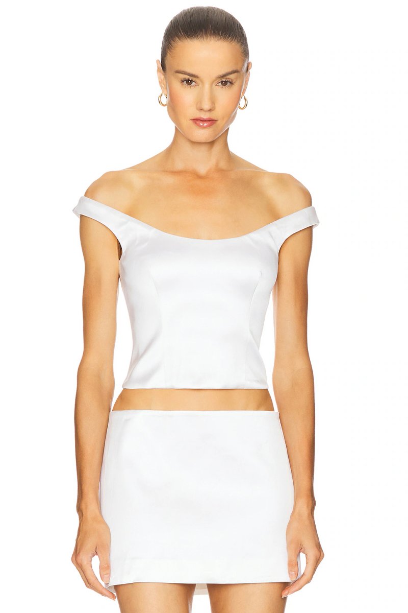 The Revolve Camila Coelho Off-Shoulder Corset Top in Ivory is ideal for date-night, casual.