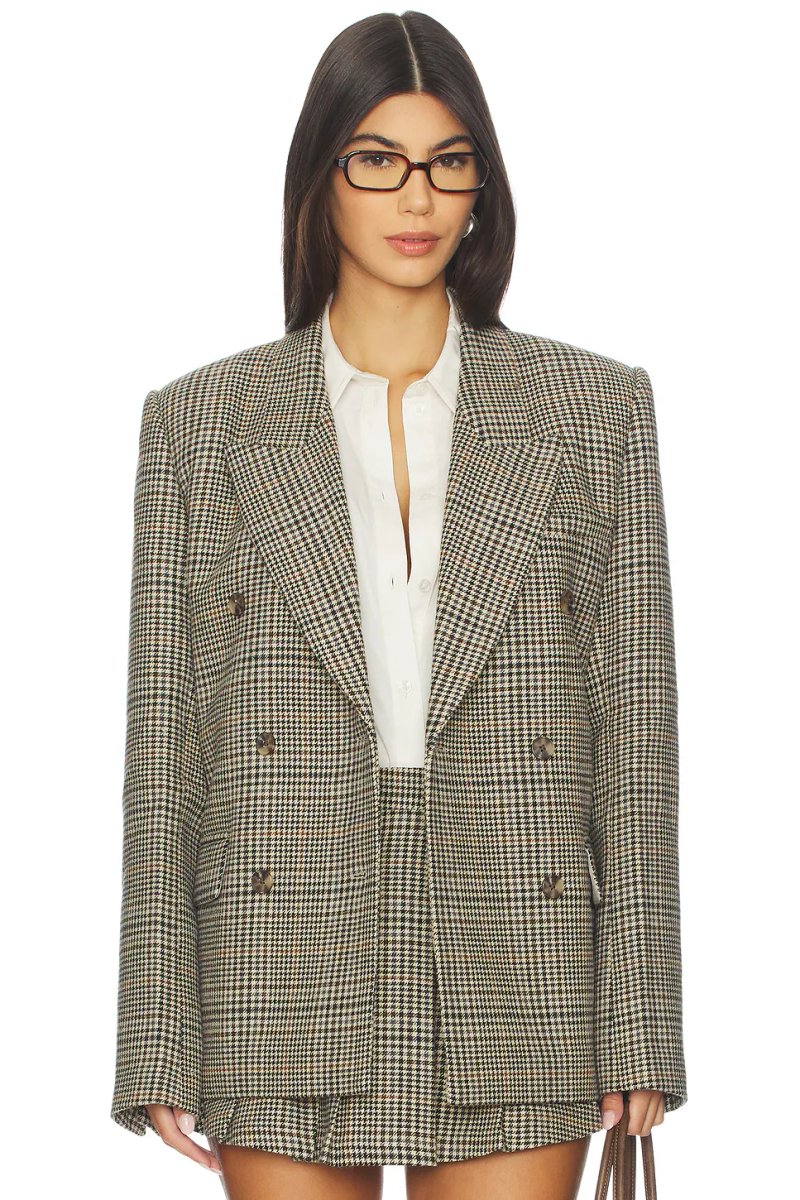 The Revolve Elsie Blazer with Houndstooth Pattern in Brown Multi is ideal for work, business, smart-casual.