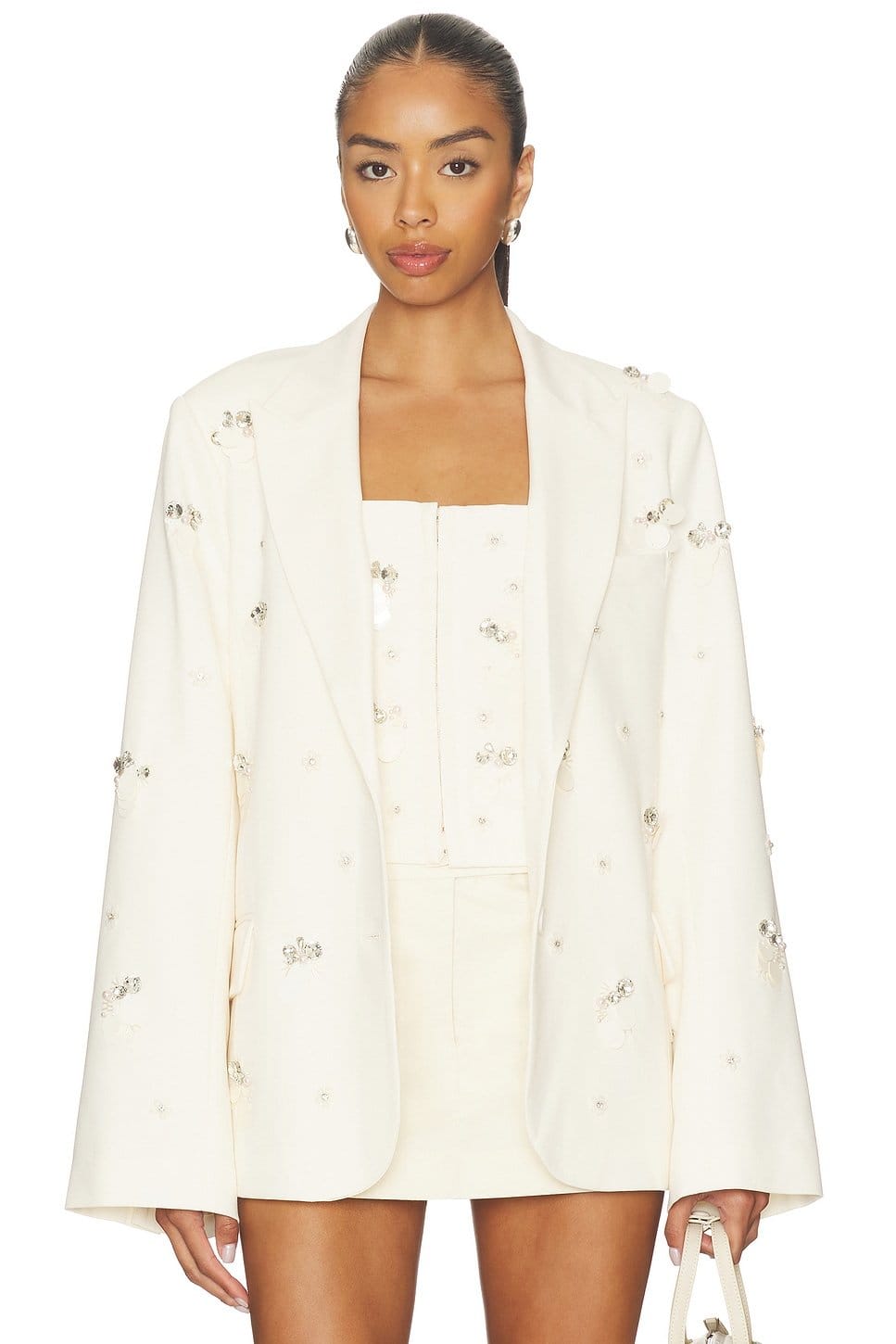 The Revolve Embroidered Oversized Blazer in Ivory is ideal for casual.