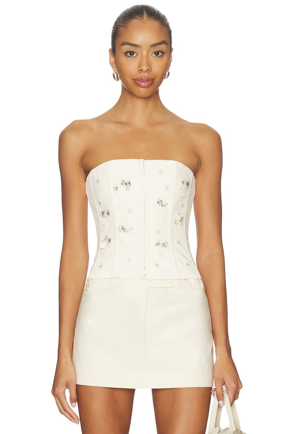 The Revolve Embellished Twill Corset Top in White is ideal for evening, party.