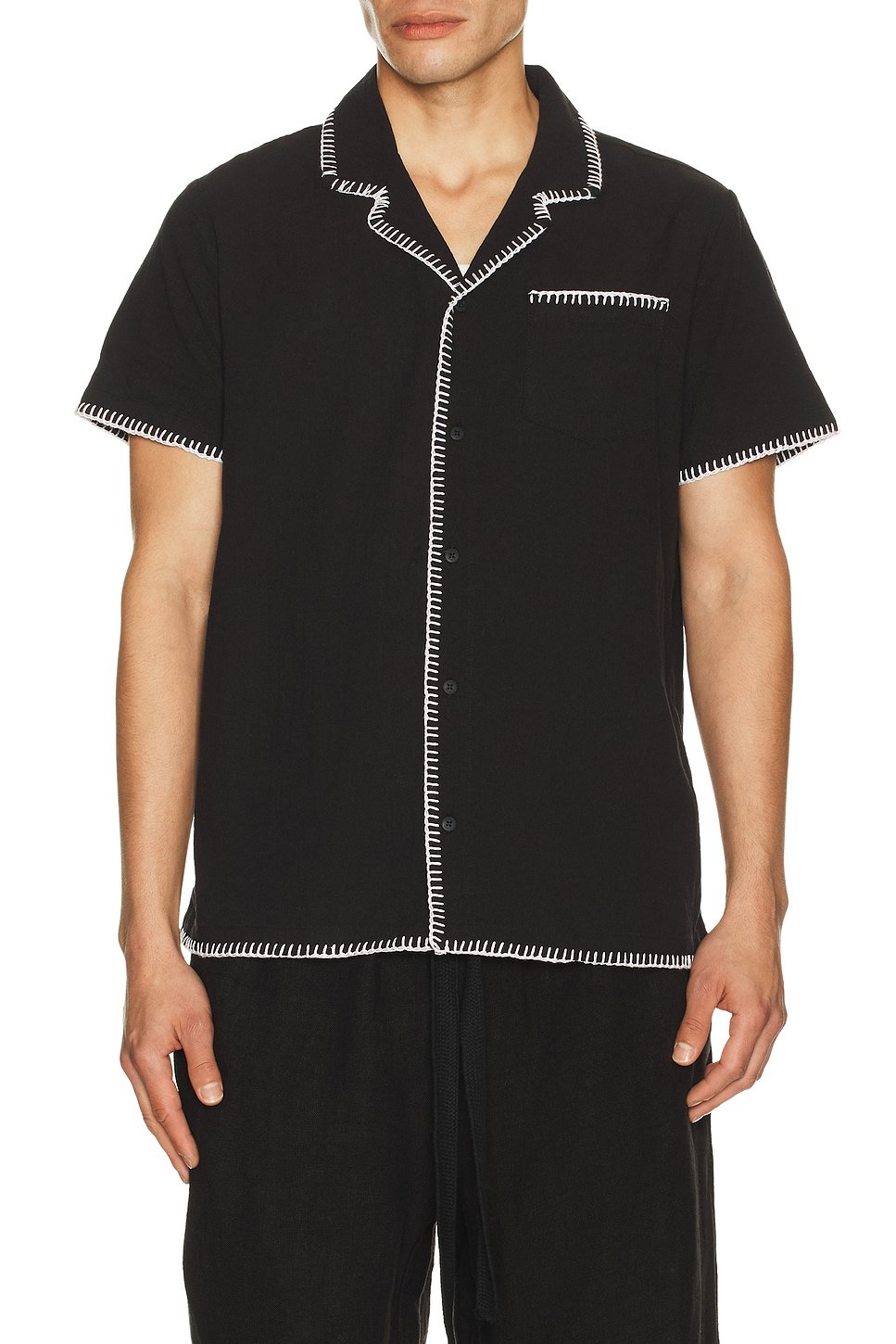The Revolve Embroidered Camp Shirt in Black is ideal for casual.