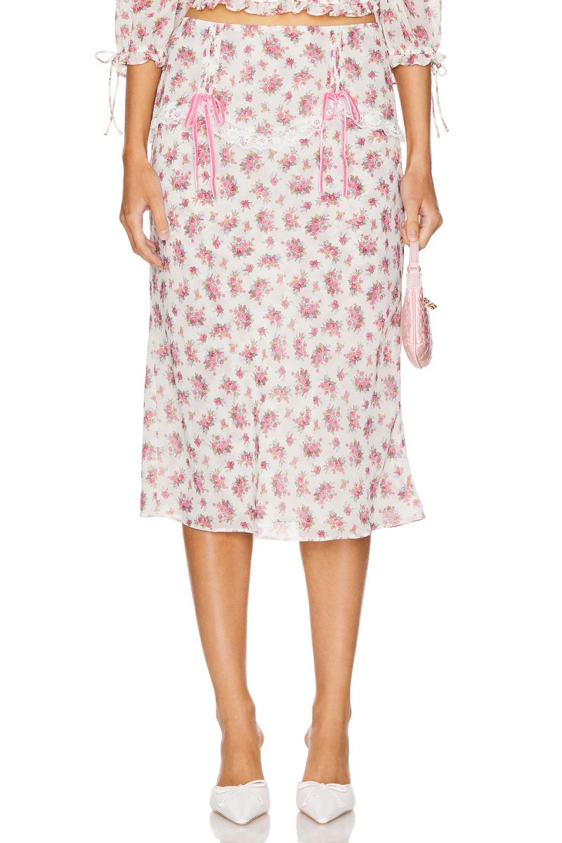The Revolve Floral Midi Skirt in Pink is available in sizes XXXL, XXL, XL, XS, L, M, S.