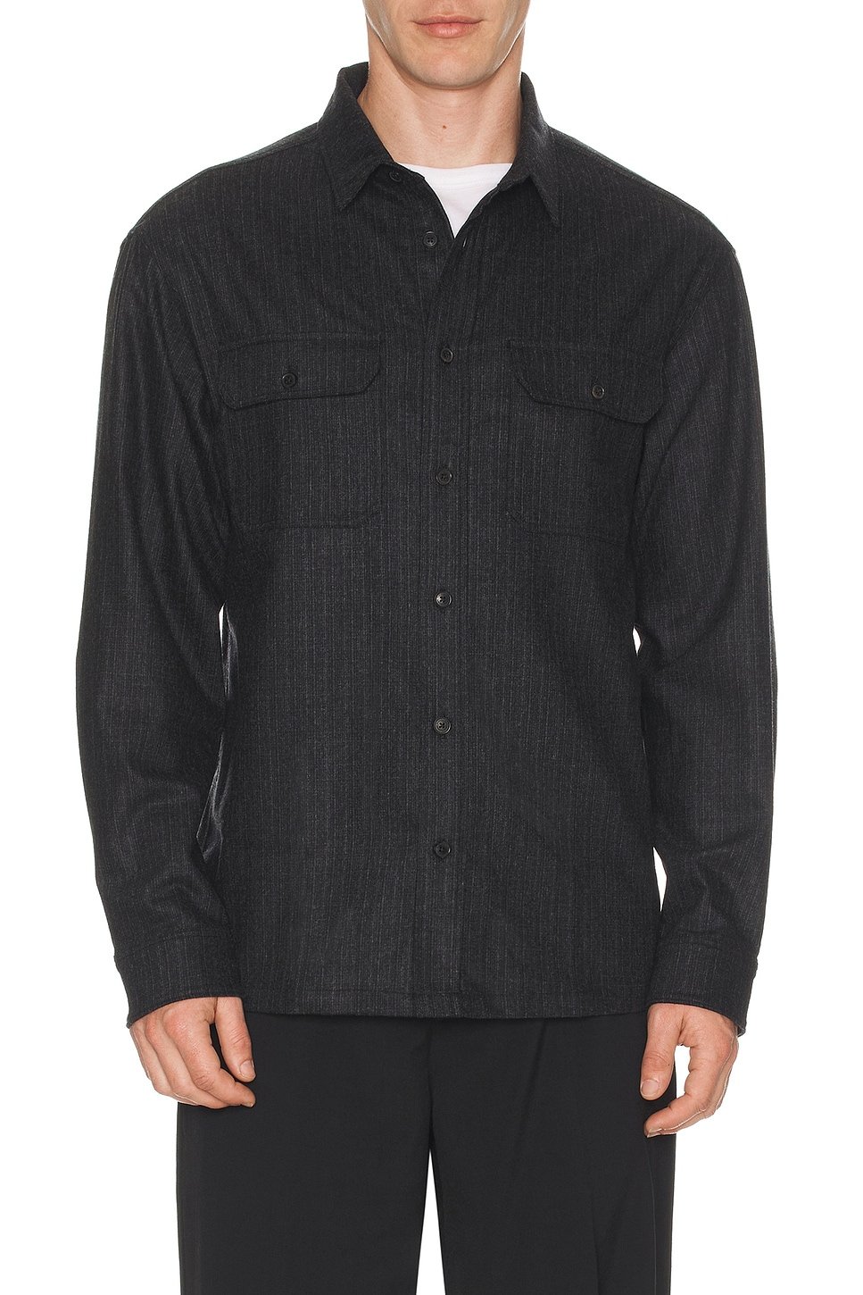 The Revolve Evander Charcoal Long Sleeve Shirt is made from cotton.