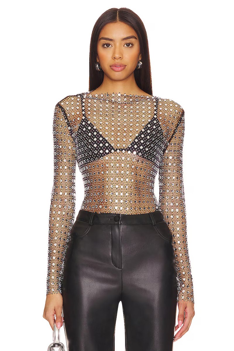 Elegant and eye-catching, the Fame Top from Nookie features a mesh-like fabric with sequin embellishments. Perfect for a night out, this top adds a touch of glamour with its long sleeves and deep neckline.