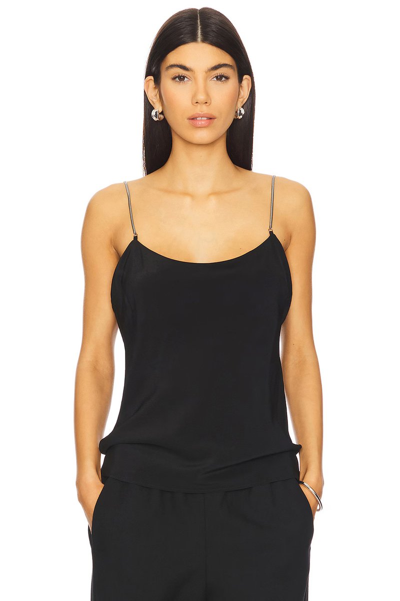 The Revolve Fine Chain Silk Cami Top in Black is ideal for casual, semi-formal.