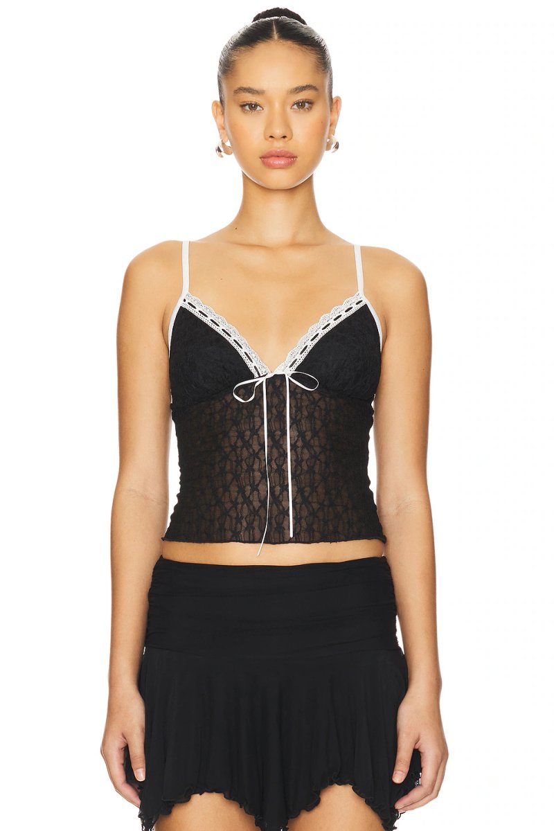 The Revolve Floral Cami Top with Lace Trim in Black & White is ideal for casual, formal, evening.
