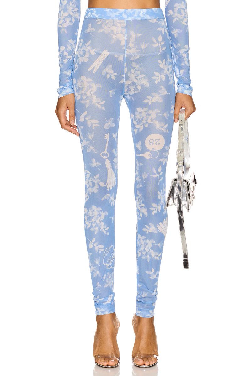 Crafted from lightweight mesh, this Floral Legging by Moschino Jeans offers a full-length silhouette, perfect for adding a touch of floral elegance to your wardrobe. The multi light blue floral print enhances the modern aesthetic, making it ideal for casual outings.