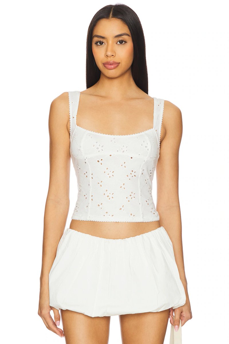 The Revolve Full Bloom Eyelet Cami in Ivory is ideal for casual.