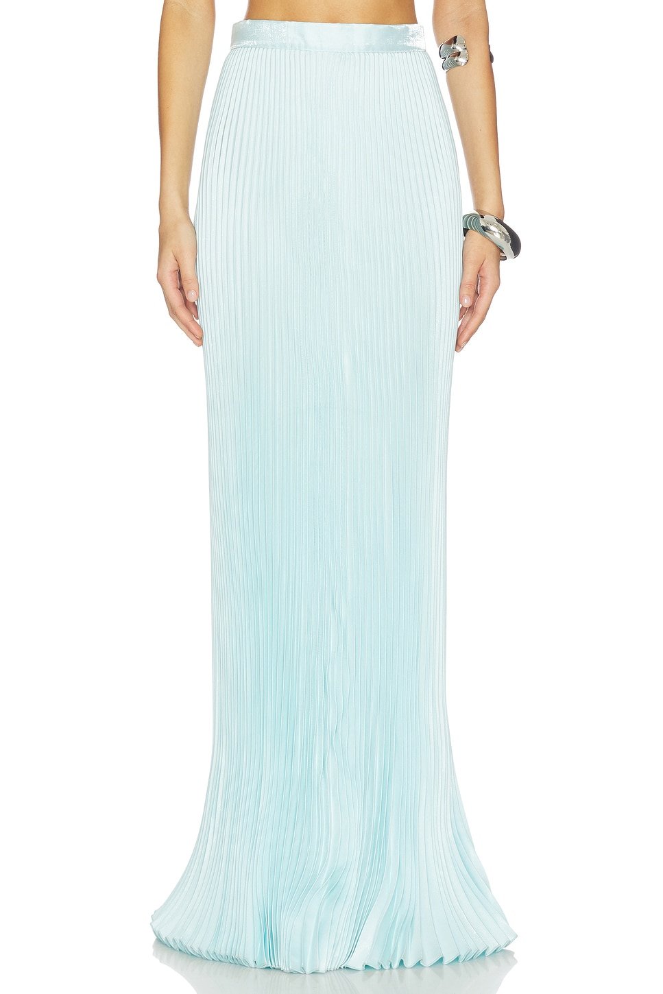 The Gala Skirt from L'IDEE features a sleek midi-length, pleated silhouette in a stunning Ice Gloss hue. Perfect for adding a touch of elegance to your wardrobe.