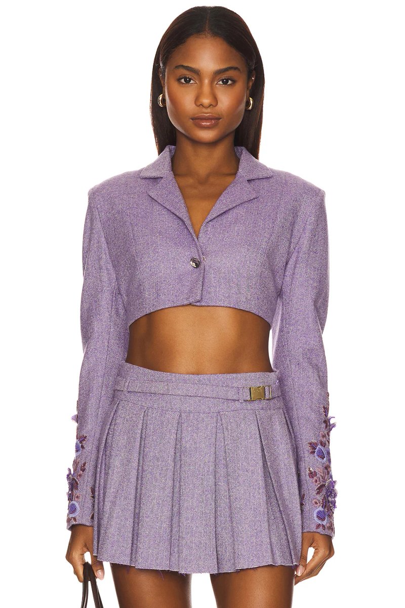 The Revolve LA FUORI Ultra Violet Tweed Mini Jacket is ideal for casual, evening.