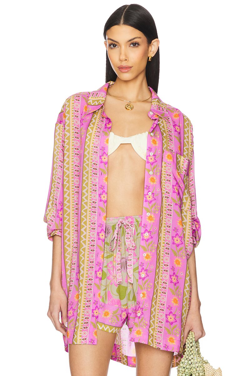 The Revolve Floral Print Shirt with Long Sleeves in Desert Rose is ideal for casual, beach.