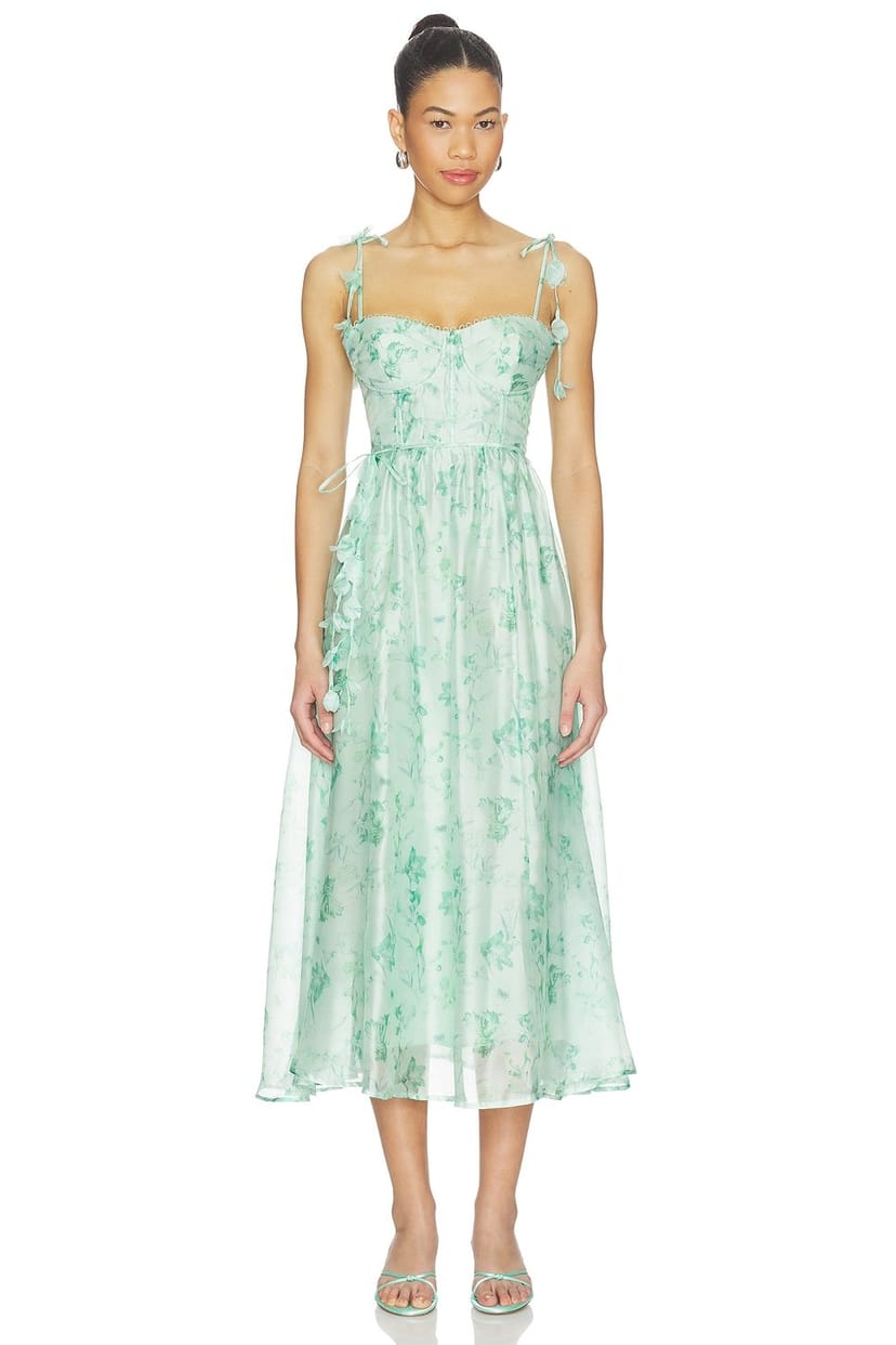 The ASTR the Label Green Floral Floral Midi Dress is ideal for garden parties, spring outings.