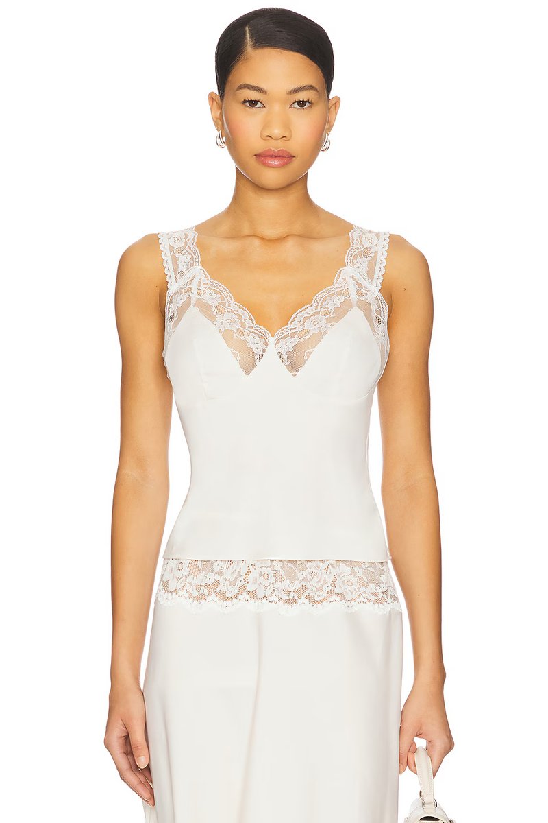 The Revolve Harper Satin Cami in Heaven is ideal for casual, intimate.