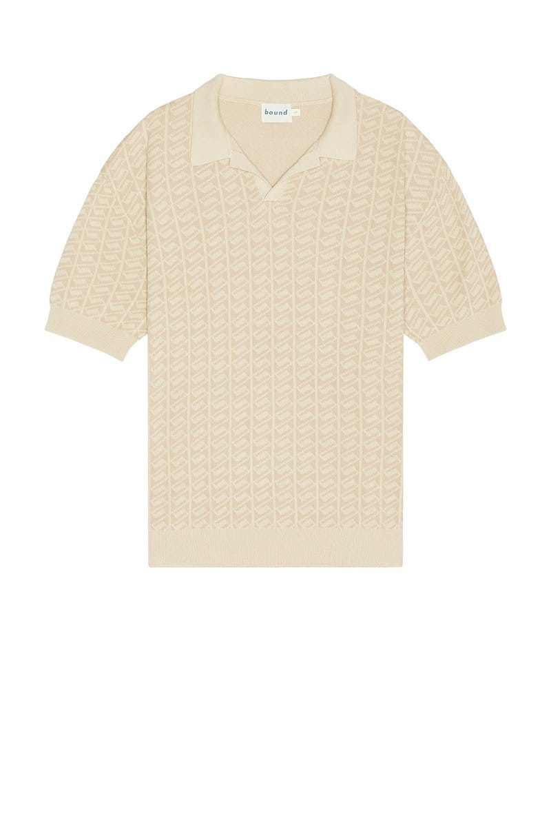 The Revolve Harris Knit Polo in Desert Sand is available in sizes XXXL, XXL, XL, XS, L, M, S.