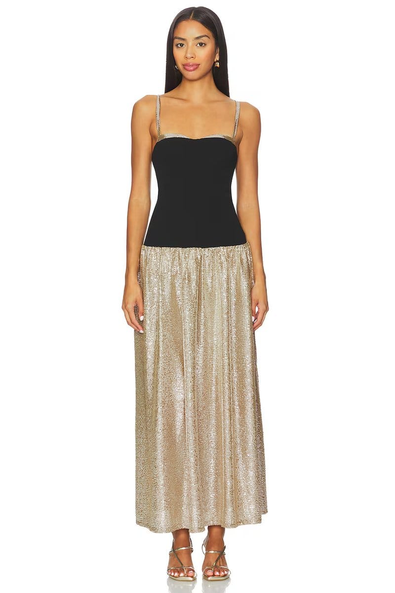 The Revolve Hepburn Midi Dress with Sequins in Silver Confetti is ideal for evening.