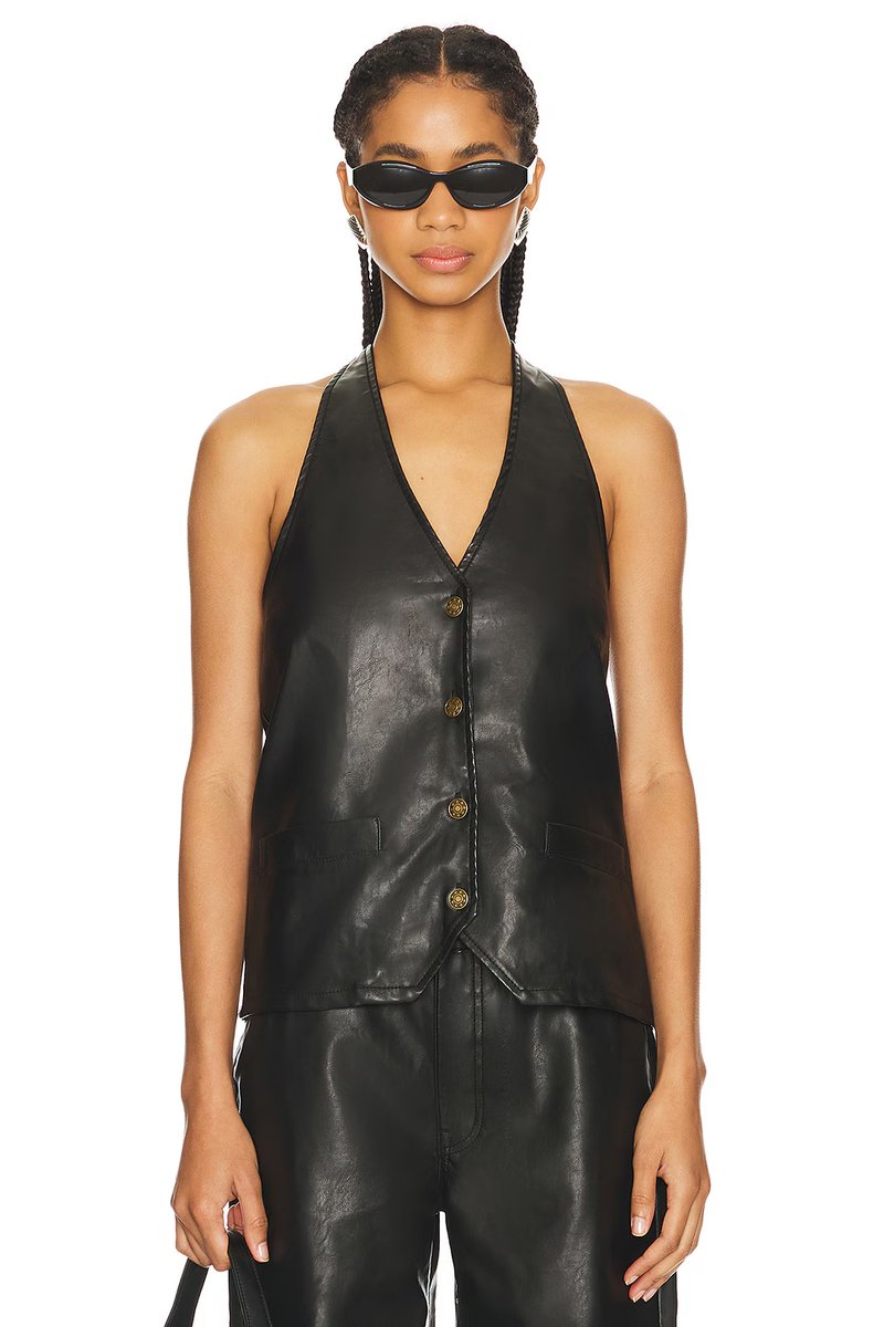 The Hills Halter from Revolve is a sleek, edgy piece crafted from leather with a halter neckline. This versatile top is perfect for adding a bold touch to any outfit, whether you're heading out for a night on the town or looking to elevate your casual wear.