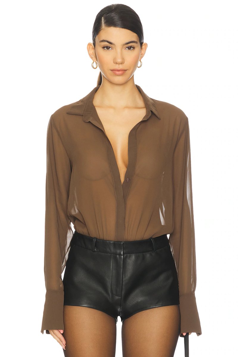 Crafted for a modern aesthetic, this Chocolate bodysuit features long sleeves and a sheer fabric that adds an element of elegance to your wardrobe. Perfect for a range of occasions from casual outings to evening events.