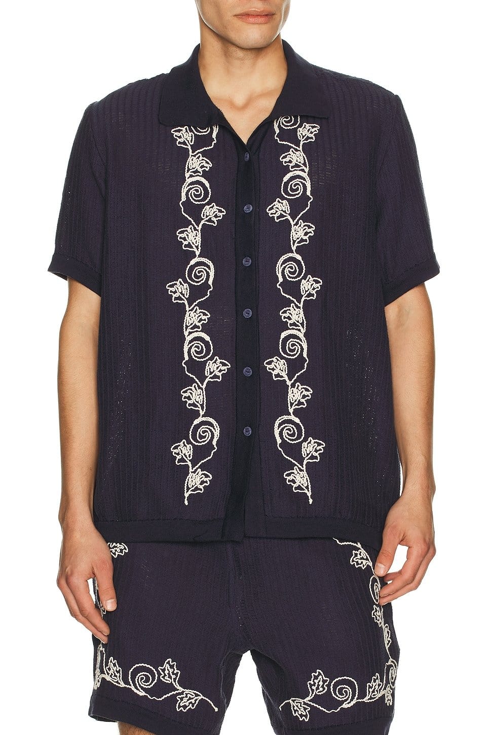 Crafted with navy and white embroidery, this short-sleeve shirt by Agua Bendita is perfect for a casual yet stylish look.