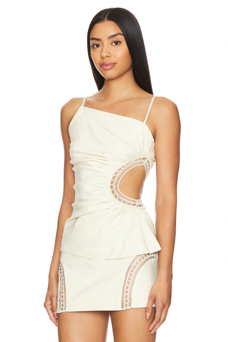The Revolve Camila Coelho One-Shoulder Top in Beige is ideal for casual, evening, beach.