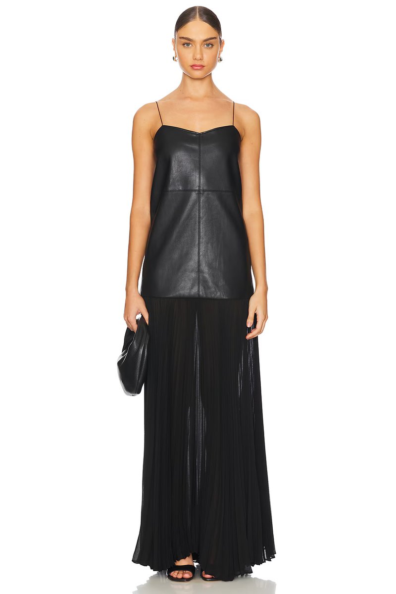 The Revolve Alexis Leather Maxi Dress in Black is ideal for evening.