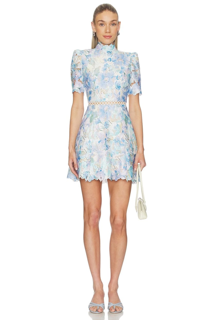 The Revolve Blue Multi Lace A Line Mini Dress is ideal for casual, outings, summer events.