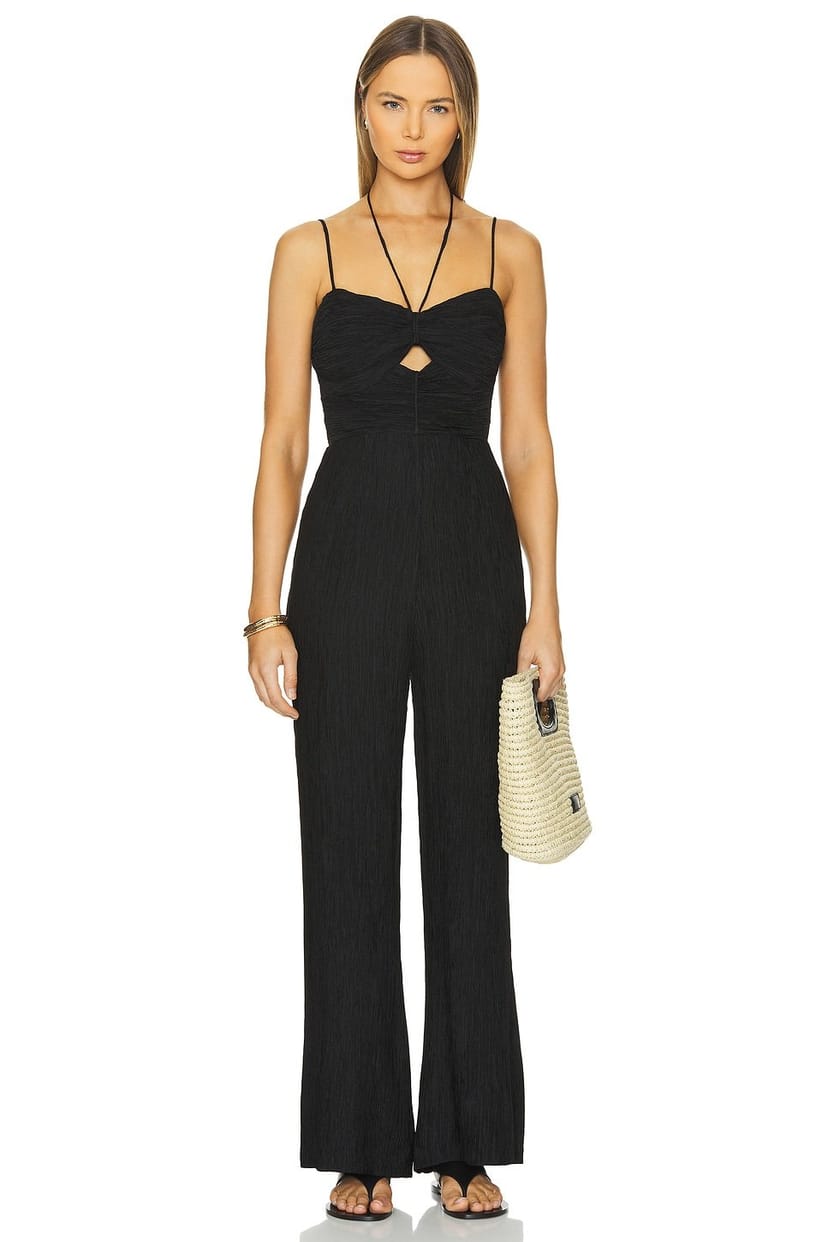 The Revolve ASTR Black Jumpsuit with Cut-Out Detail is made from polyester, elastane.