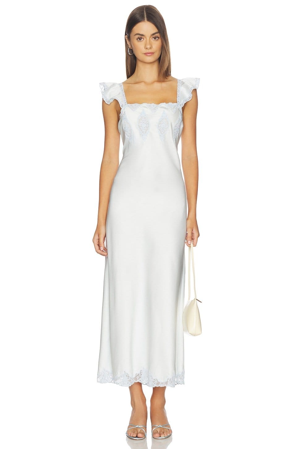 “Pair with pearl earrings and a clutch for a classic evening look.”
