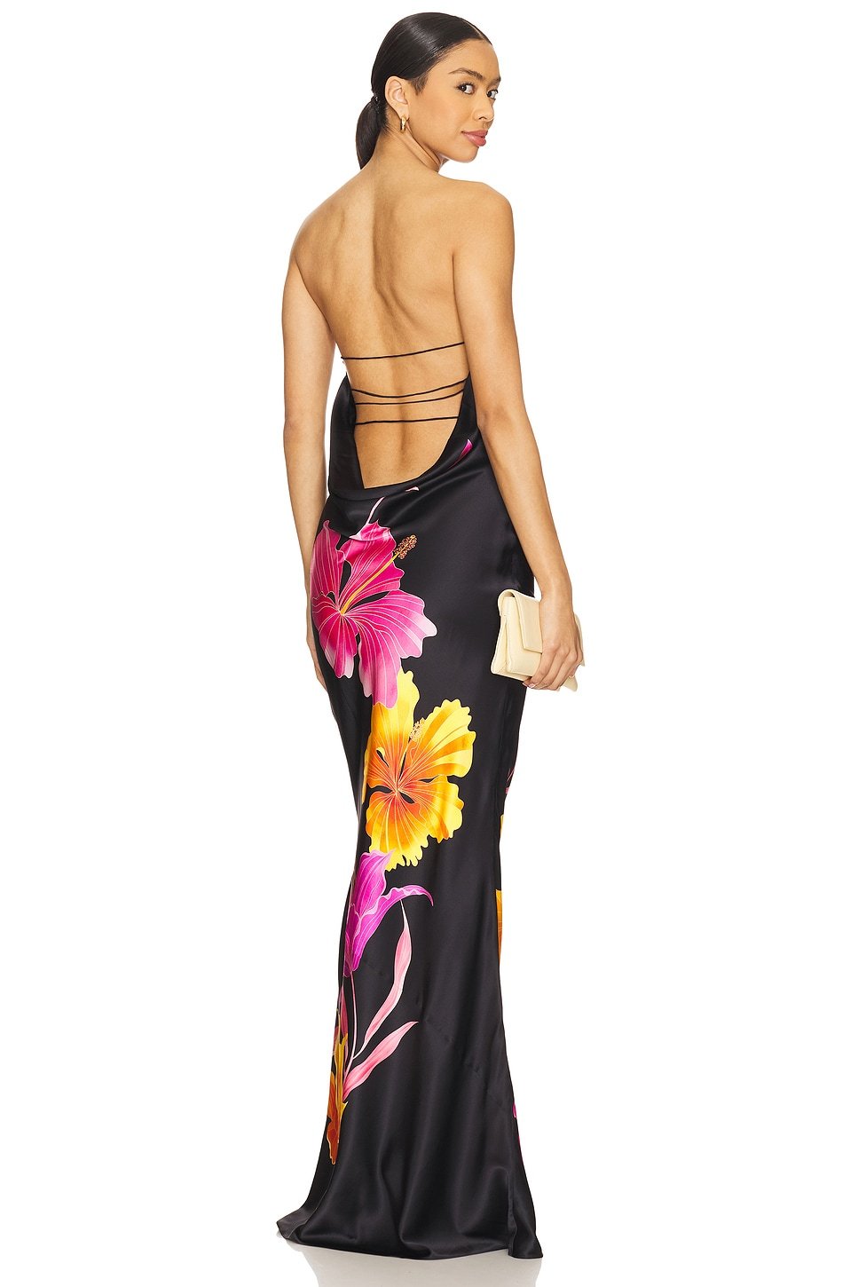 The Revolve Floral Print Silk Dress in Black is ideal for evening, party, formal.