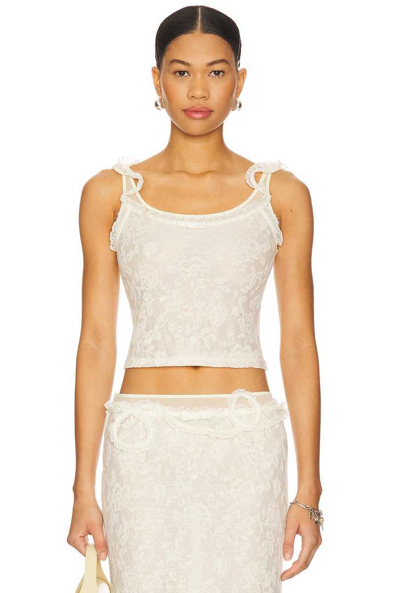 The Revolve Lace Layered Top in Beige is ideal for casual, evening.