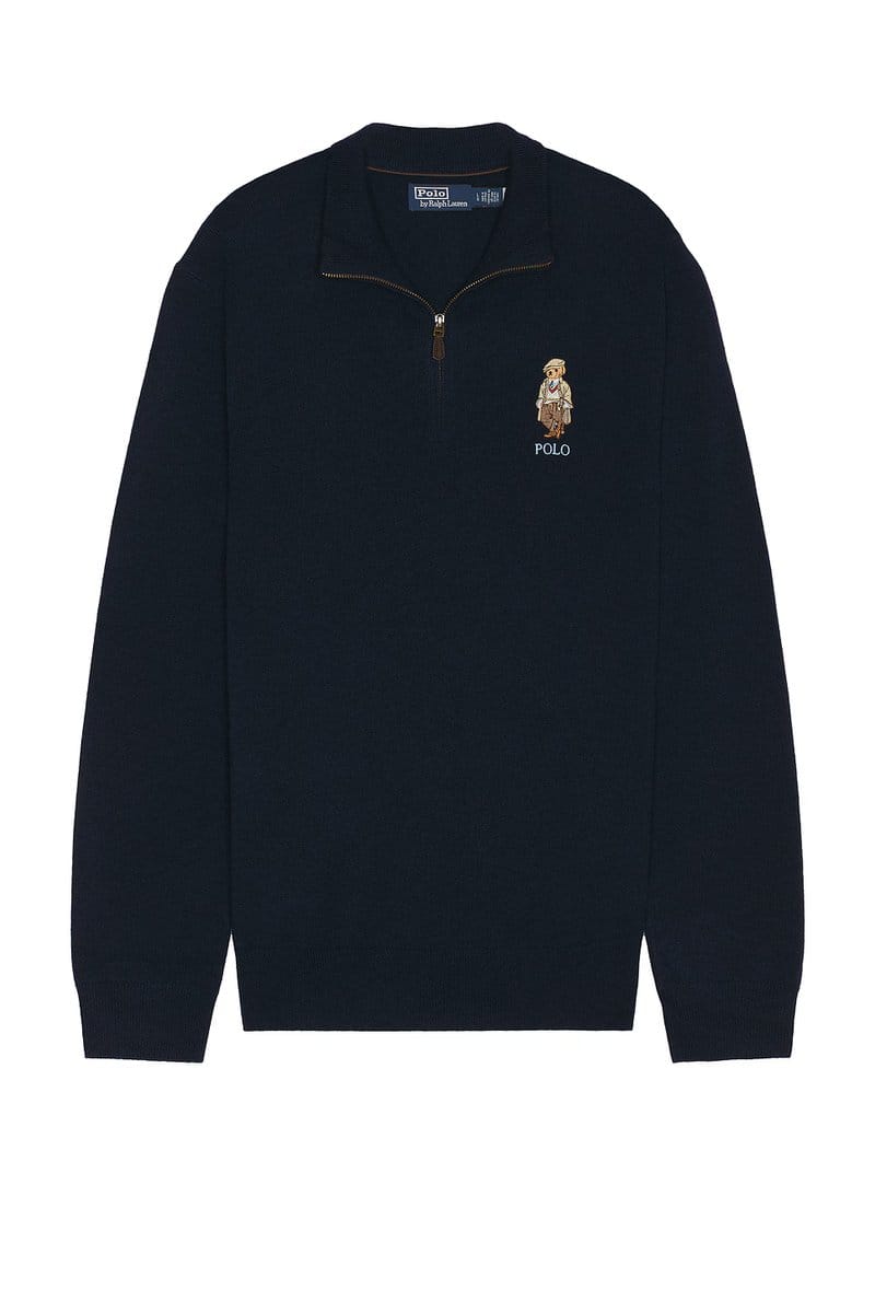 The Polo Ralph Lauren Novelty Bear 1/2 Zip Sweater in Hunter Navy is ideal for casual, business-casual.