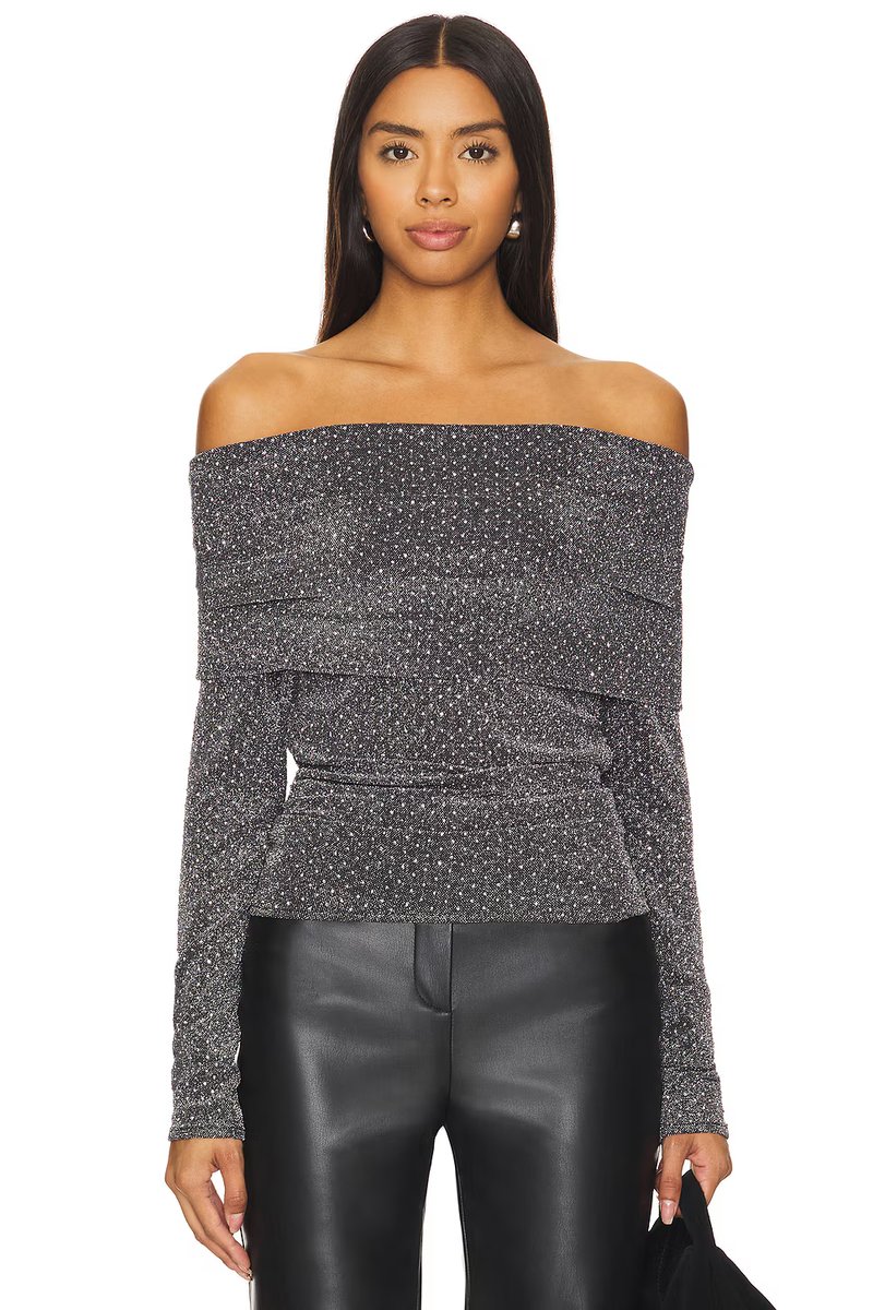 The Revolve Rhinestone Off-Shoulder Long Sleeve Top in Black is ideal for evening, party, date-night.