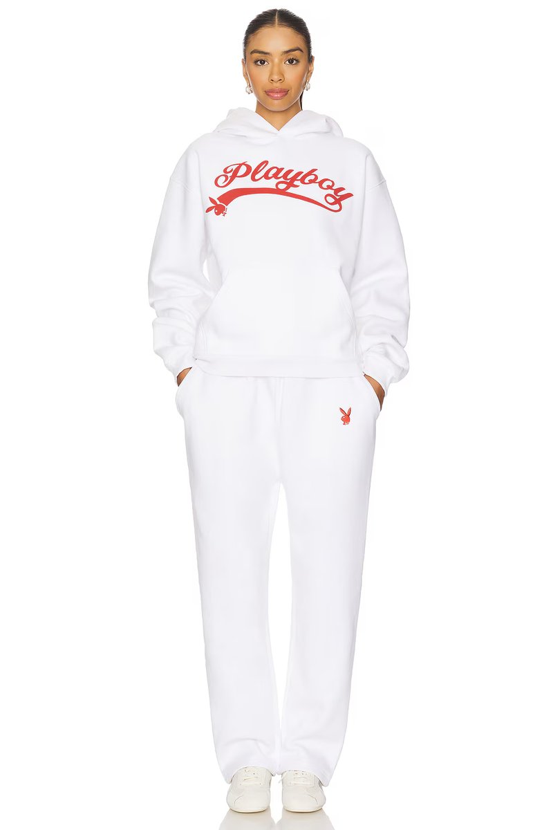 The Revolve Playboy Logo Hoodie and Sweatpant Set in White is ideal for casual, lounge.
