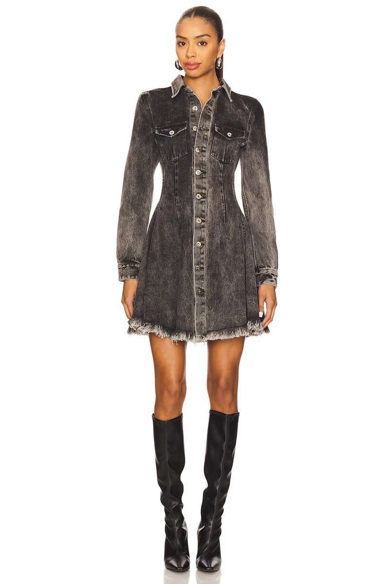 The (FIXED) Marques' Almeida Black Acid Wash Denim Mini Shirt Dress is ideal for casual, evening.