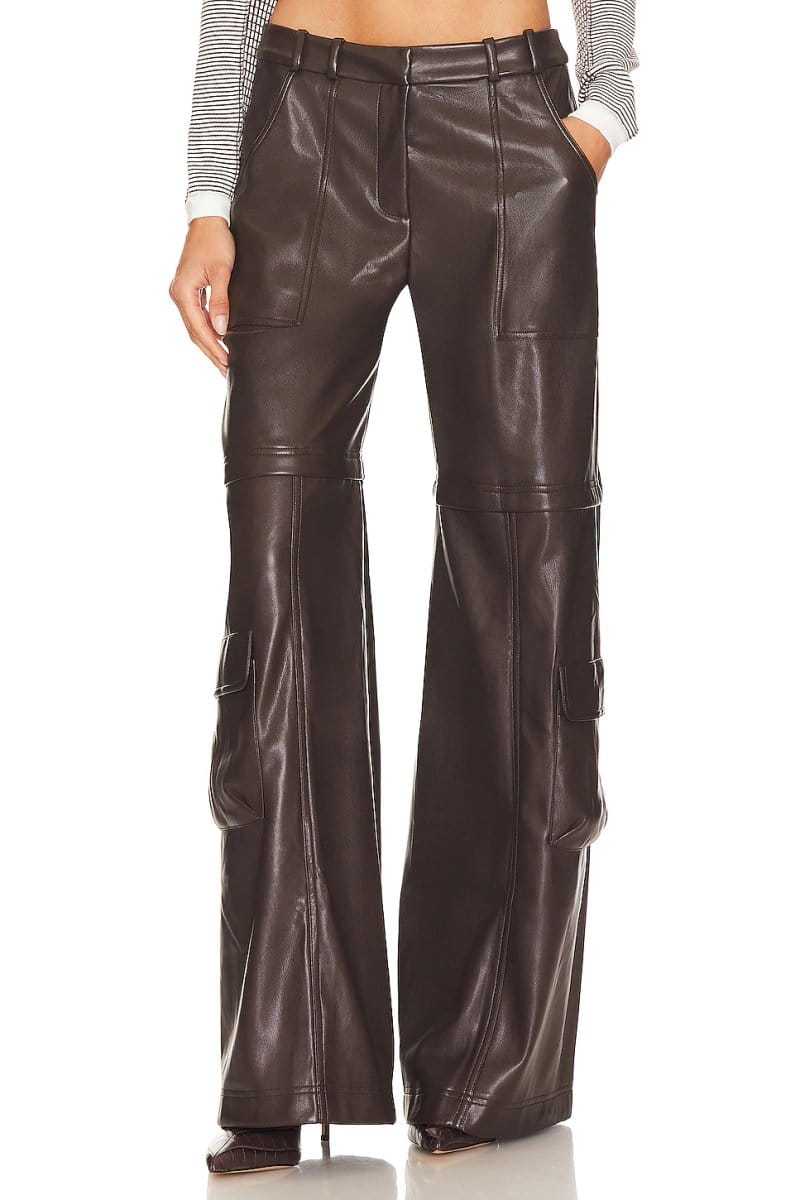 Designed with Cocoa cargo pockets, wide-leg fit, and leather fabric, these Lucas Pants from Revolve are perfect for a casual and modern look.
