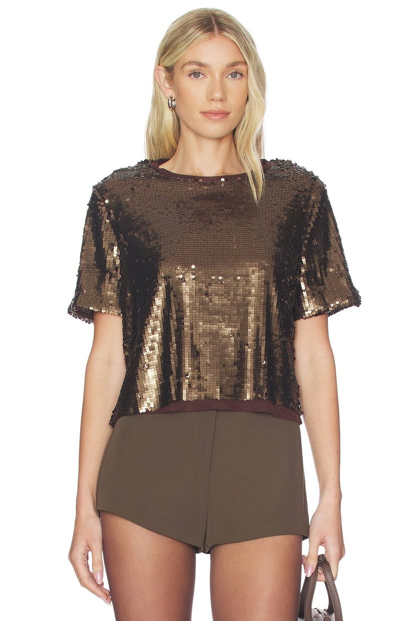 The Revolve Lucy Sequin Tee in Coffee is ideal for party, evening.
