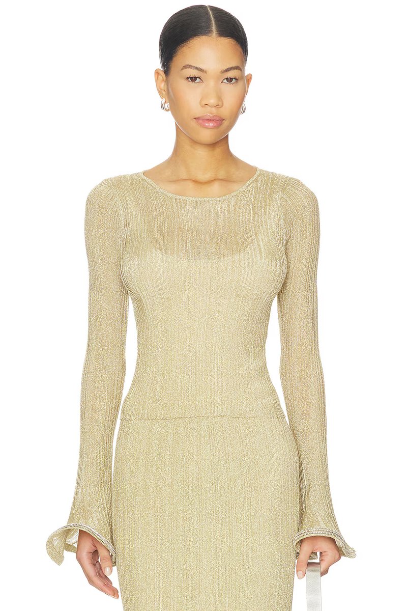 The Revolve Maebry Satin Long Sleeve Crewneck Top in Gold is ideal for evening, formal.