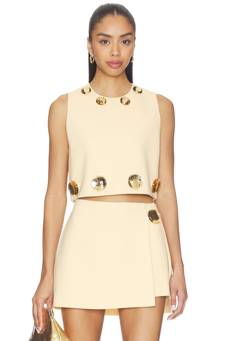 The Revolve Alexis Maree Top with Gold Buttons in Butter Cream is made from polyester.